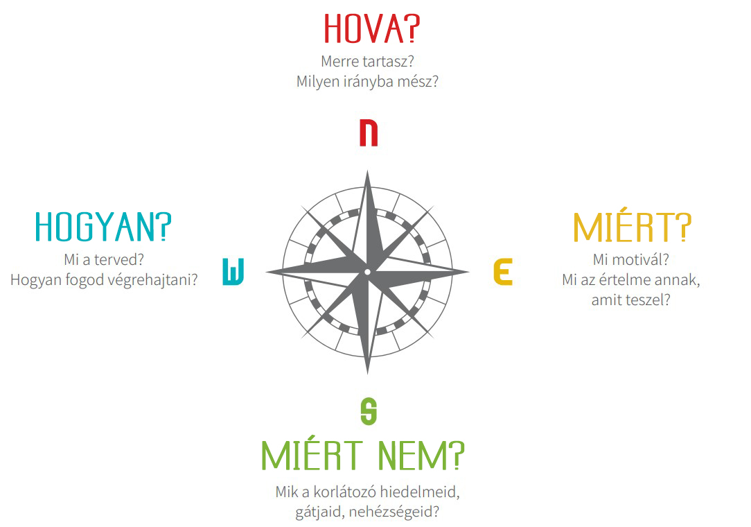 A módszertanban azonban a négy égtáj egyúttal azt a négy legjellemzőbb elakadást is jelenti, amely a szervezetek működését megnehezíti, teljesítményét lekorlátozza. Ezek feltárásával és tisztázásával egy egészségesebb, coaching-szemléletű vállalati kultúra alakítható ki.